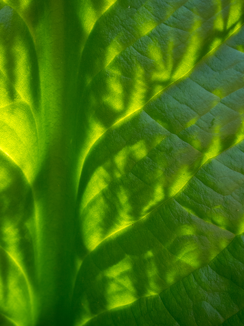 Skunk cabbage with bracken fern shadows.