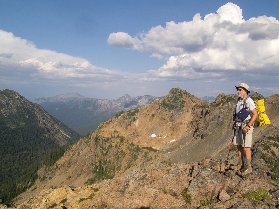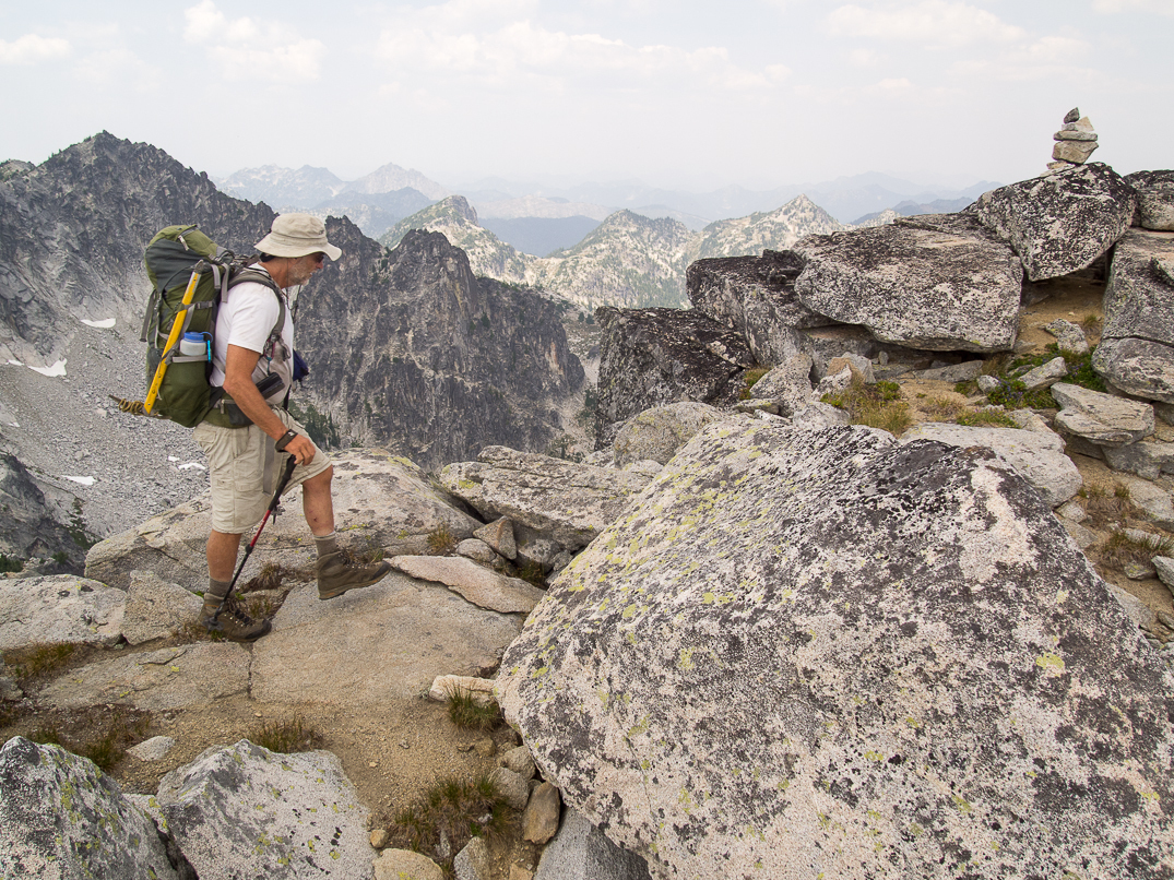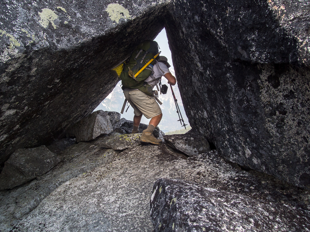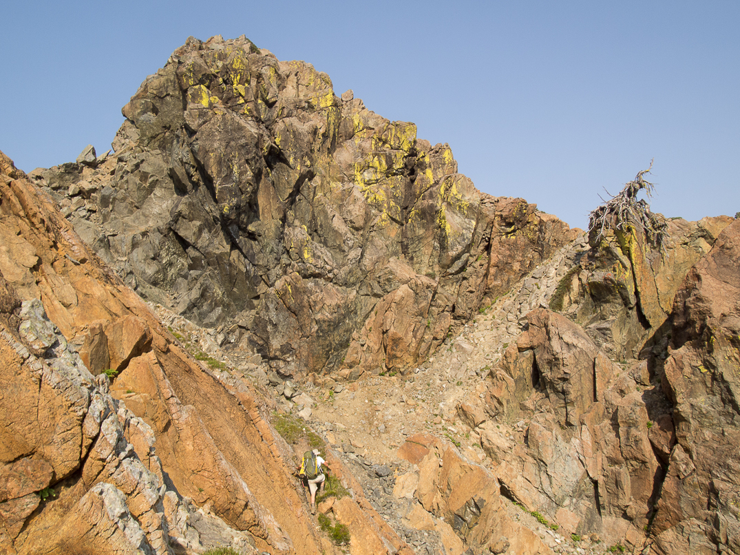 Ascending South Granite Mtn's SW ridge with Sherpani Peak in the background.