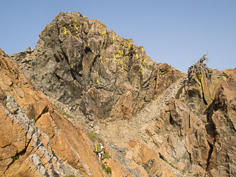Descending the talus field on the NW slopes below the 6,600' saddle.