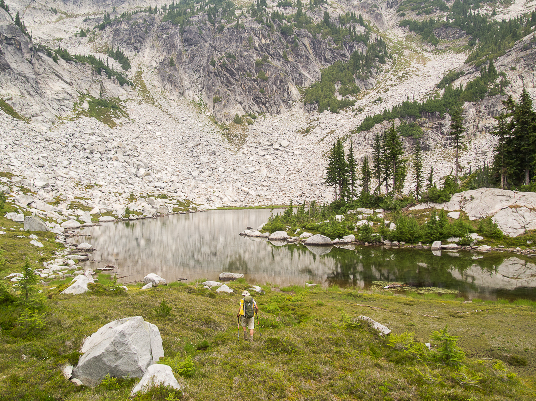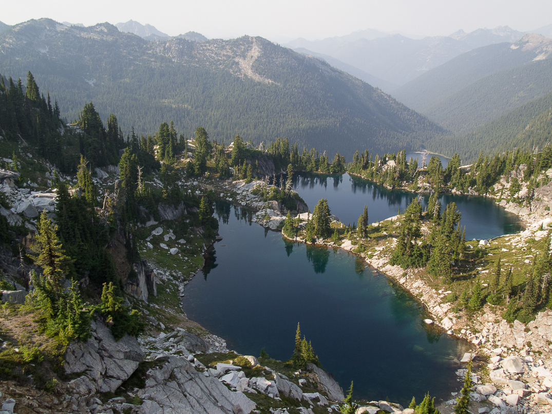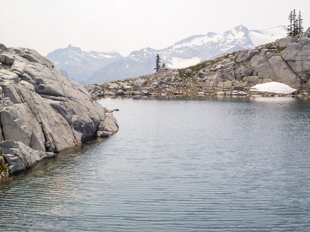 A lake between Granite Mtn and South Granite Mtn. The Citadel and Mount Daniel on the horizon.