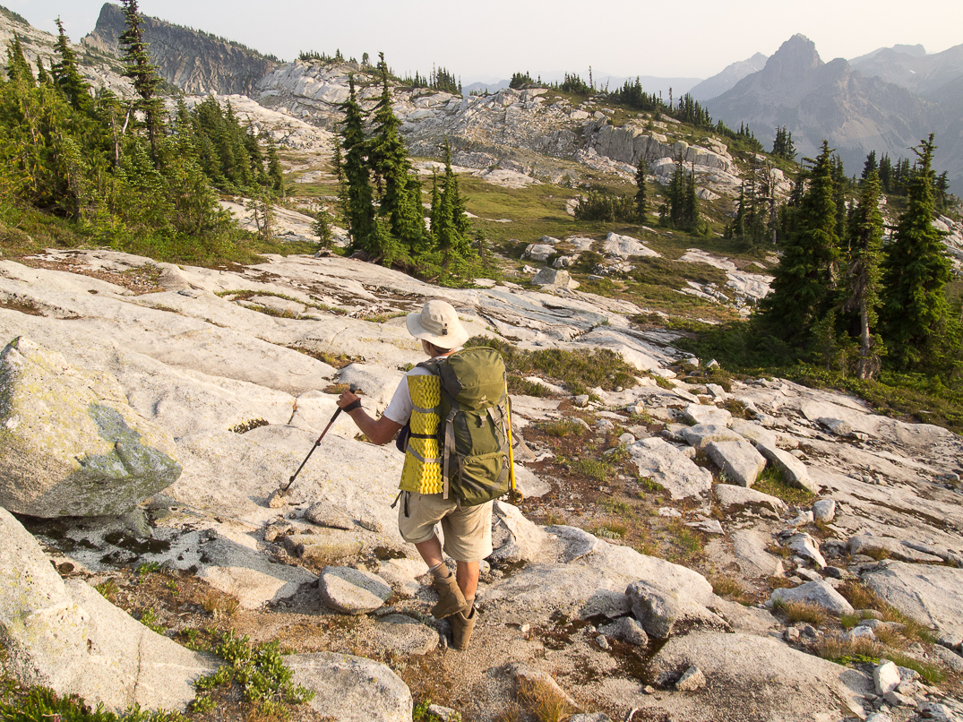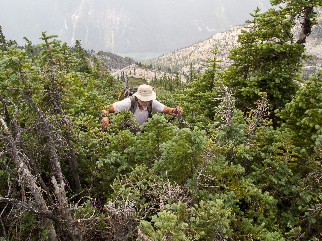 Traversing the north side of Paddy-Go-North's NW ridge. Our next destination, Sherpani Peak, on the horizon.