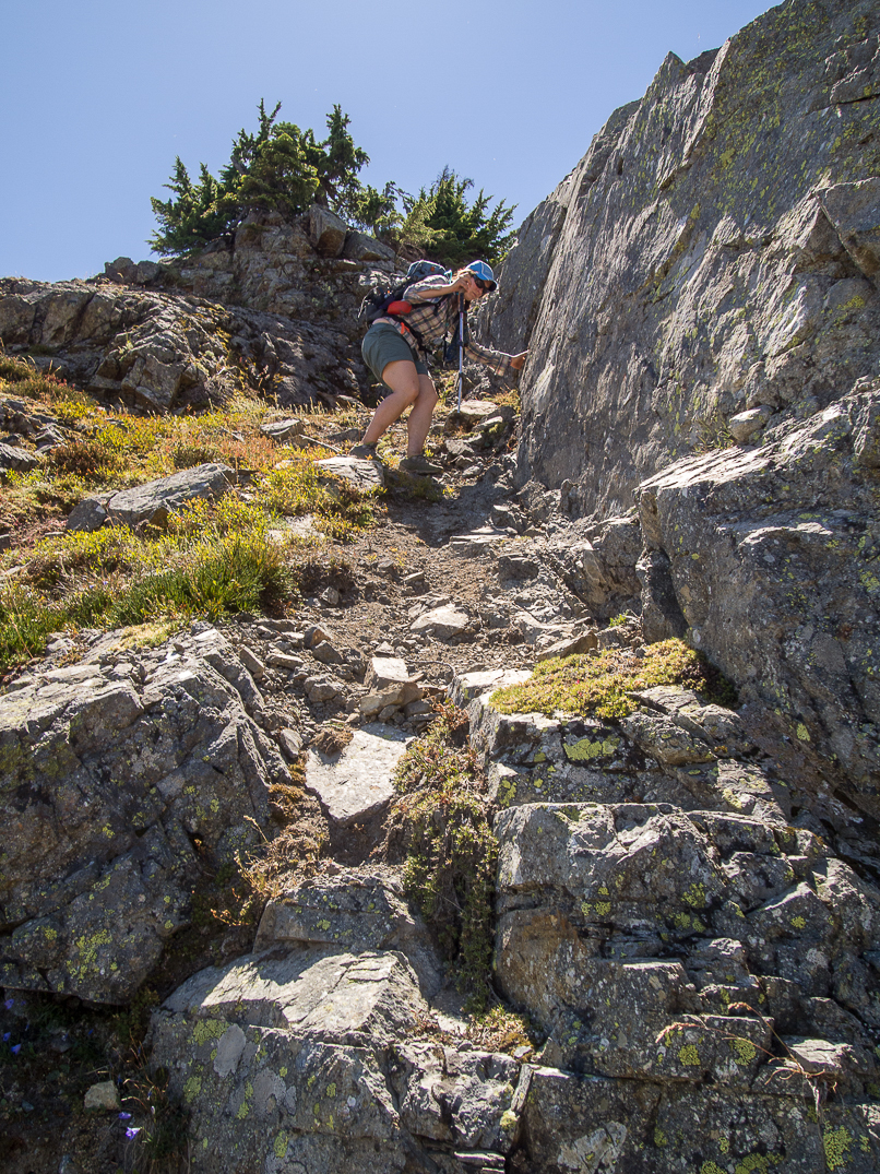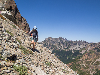Shortly below the summit we descended directly from the south ridge to the 5,720' pass above Lila Lake.