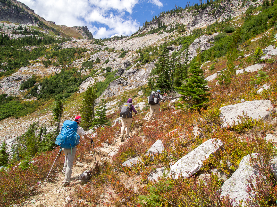 Hiking down Icicle Creek Trail. We got our car shuttle at the trailhead by 3:30 PM.