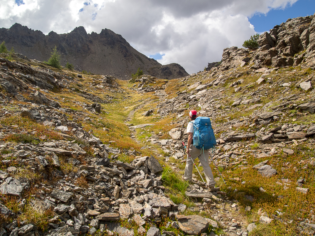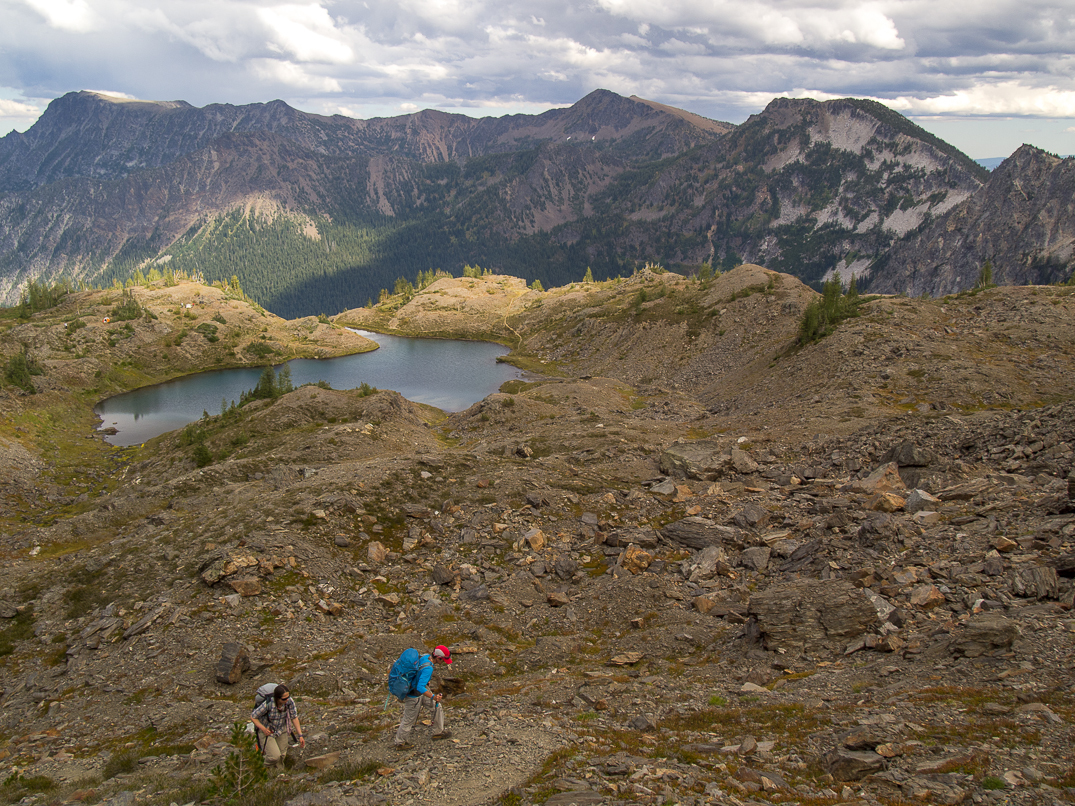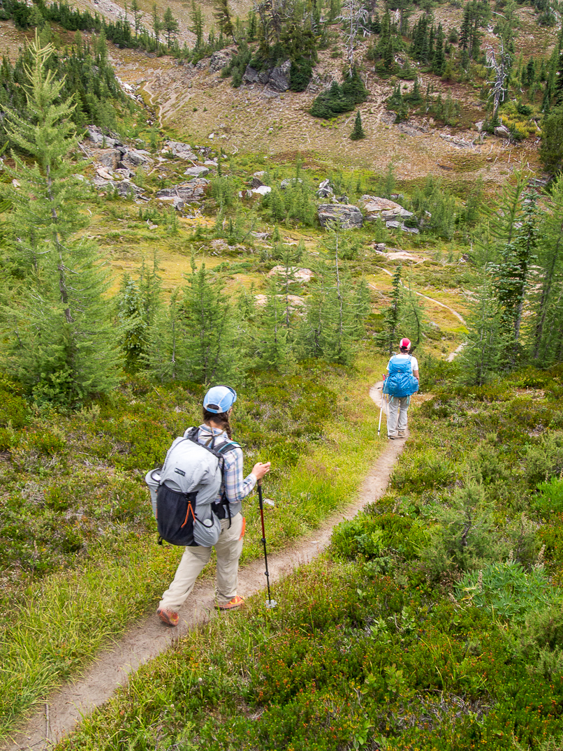 Descending the Frosty Creek Trail. Sixtysix Hundred Ridge (left), The Cradle, and Paddy-Go-Easy Pass in the background.
