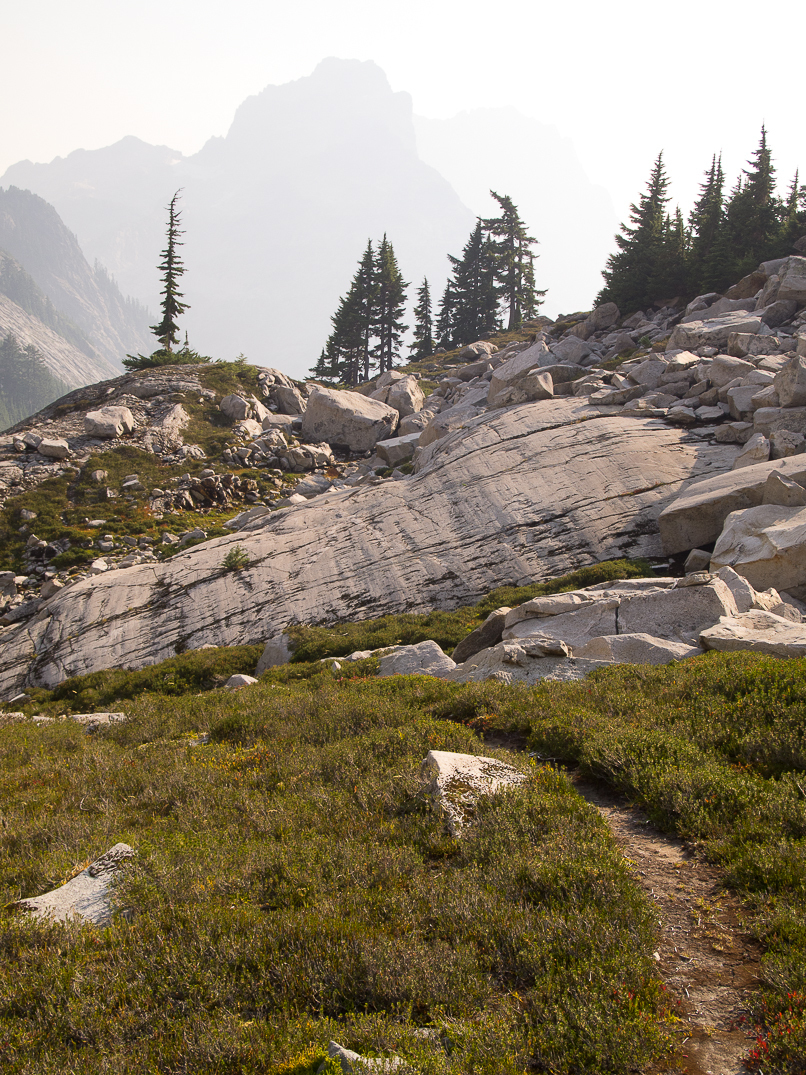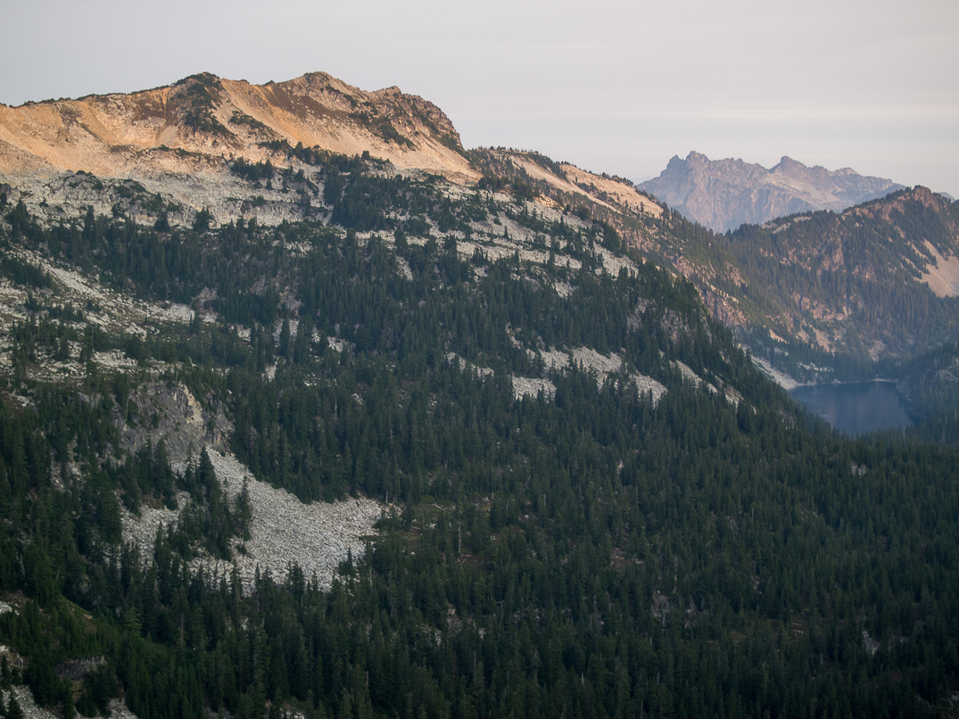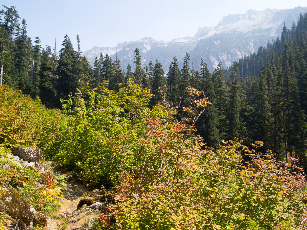 I took the D line bus to downtown Seattle, bus #554 to the Issaquah P&R, bus #208 to North Bend, walked through North Bend to the Mt Si Road, and hitched a ride to the Mt Teneriffe Trailhead (CCC Trailhead). I started hiking up the CCC Trail from there.