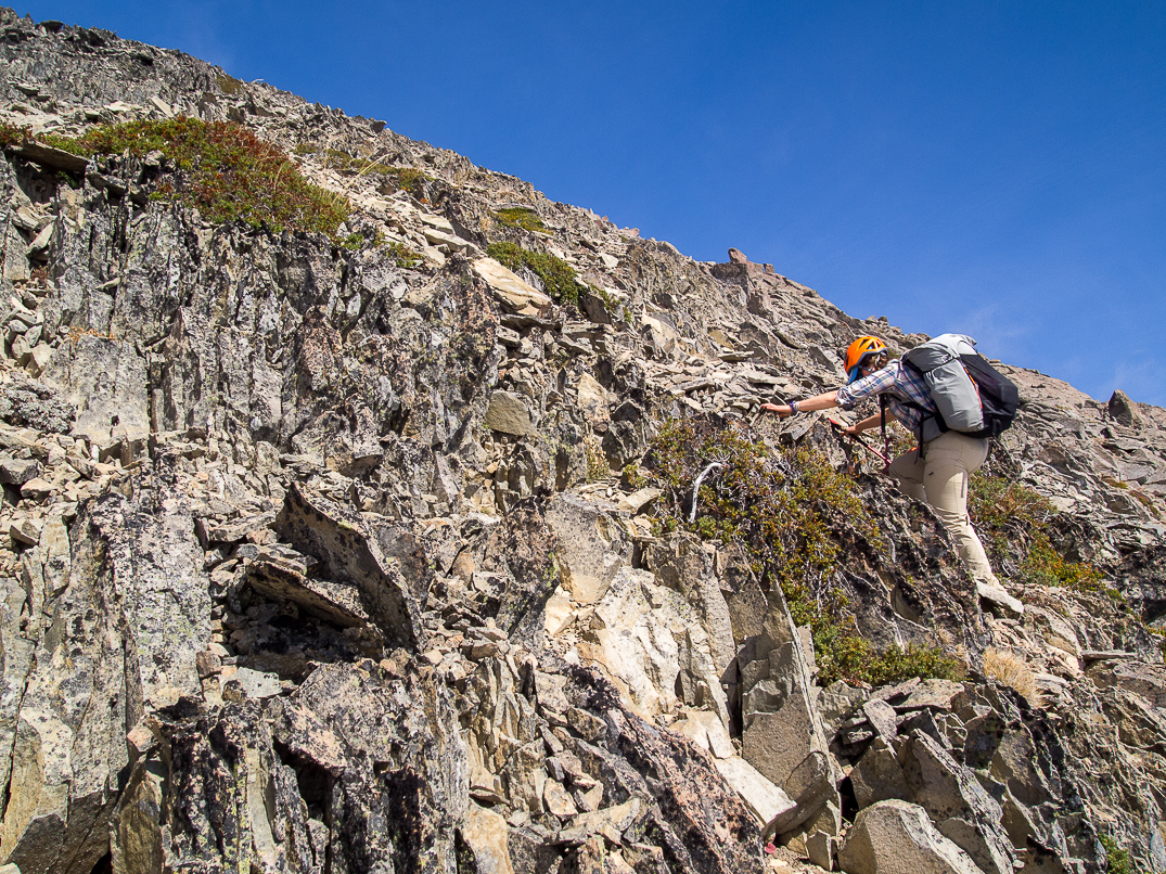 Ives Peak's chossy south slopes, right below the summit.