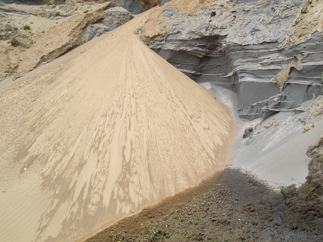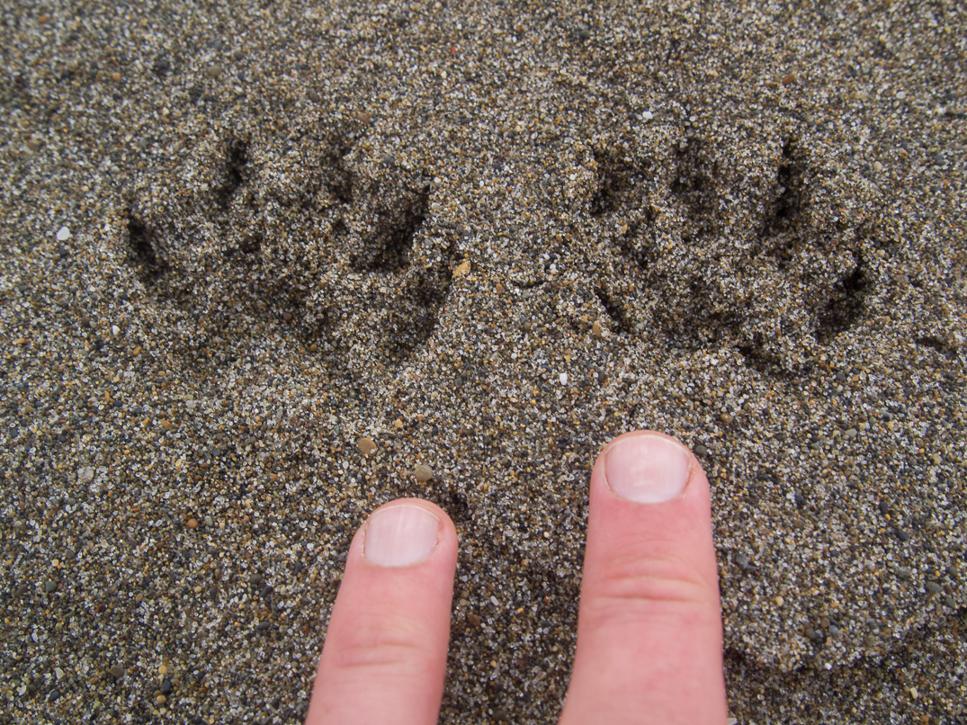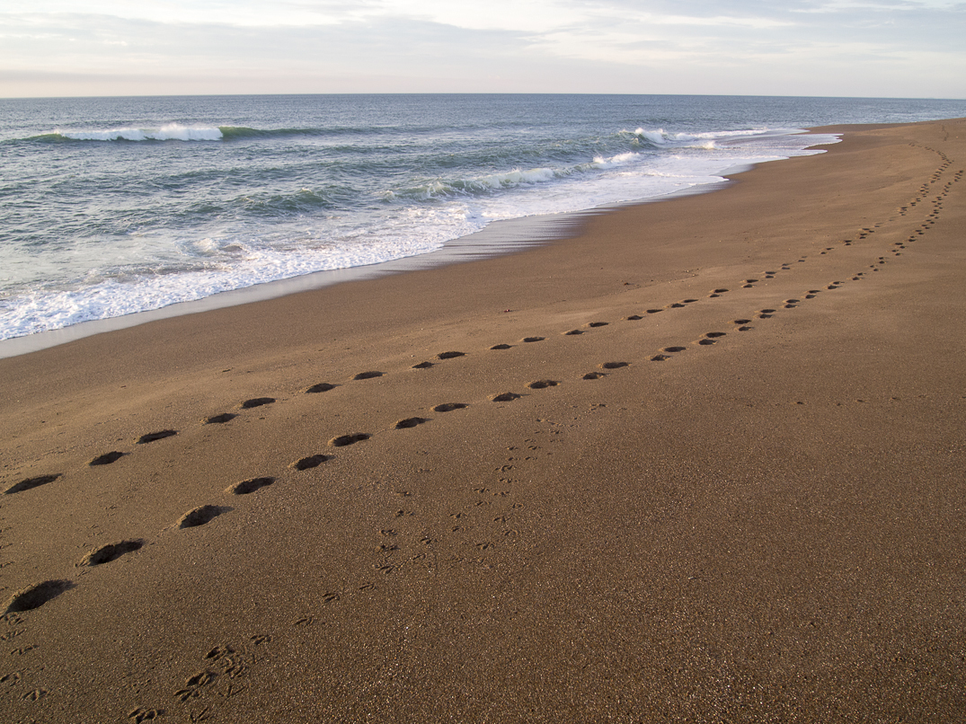 This critter dug into each pile of seaweed on the beach.
