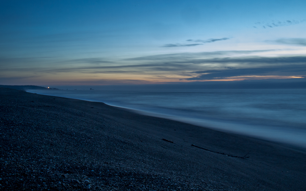 The Cape Blanco lighthouse strobe light, an hour after sunset.