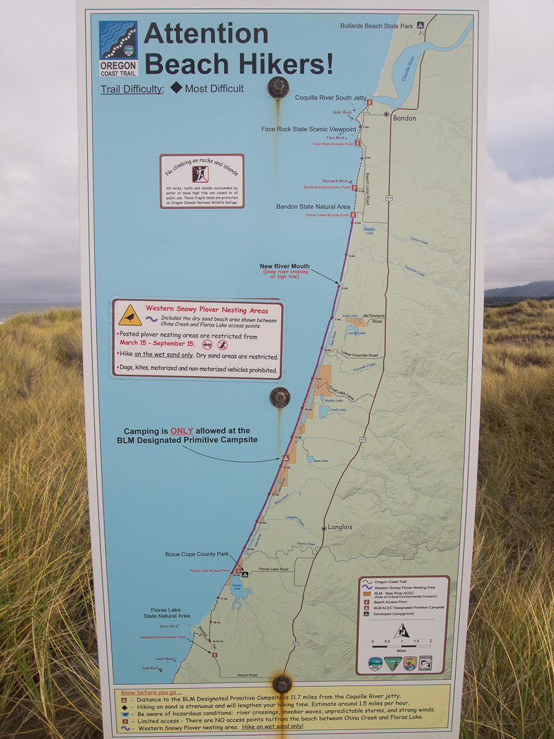 Bandon to Floras map with Snowy Plover restriction information.