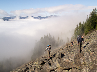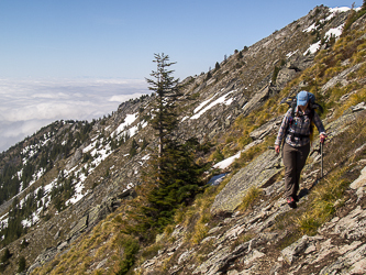 Heading SE on the ridge, toward Web Mtn. McClellan Butte in the background.