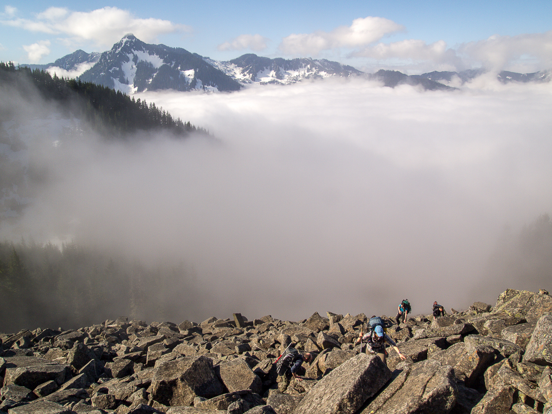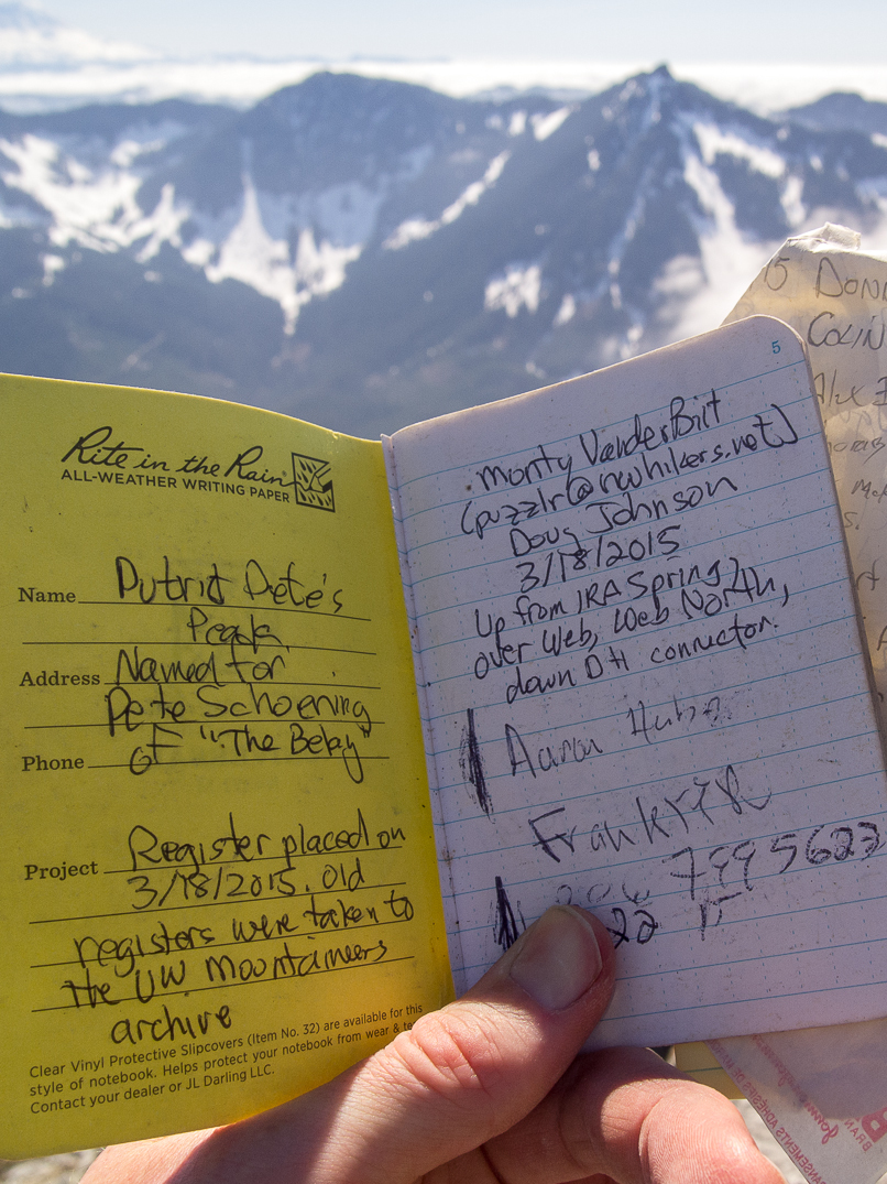 Nearing the summit of Web Mountain with Dirtybox Peak in the distance.