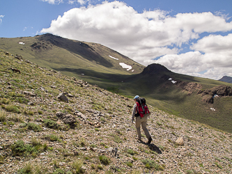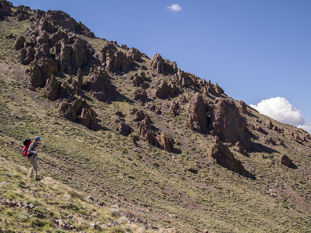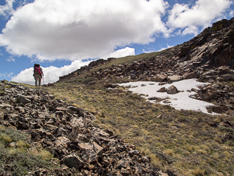 Descending Pueblo's east slopes.