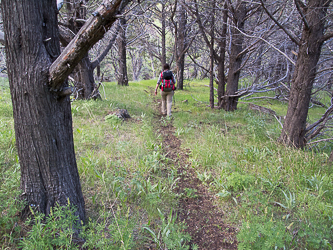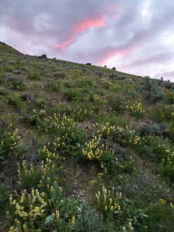 Evening light on the 6,400' saddle south of the Pike Creek headwaters.