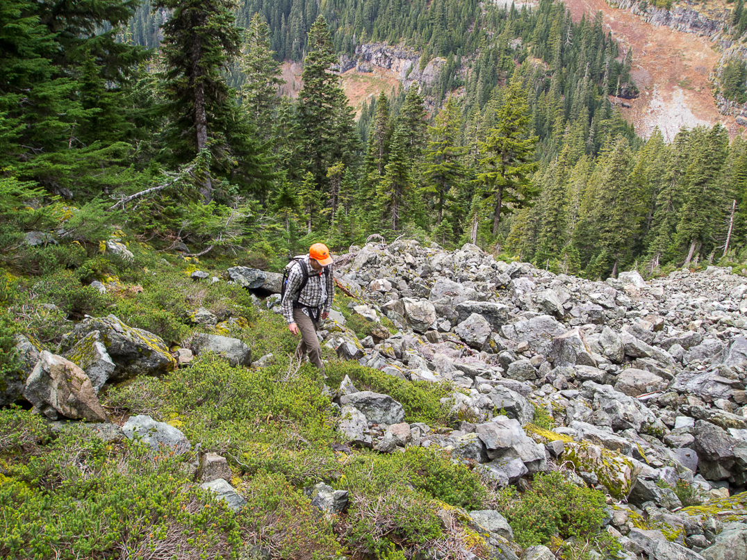 Dungeon Peak from a boulder field above the Lake Lillian Trail.