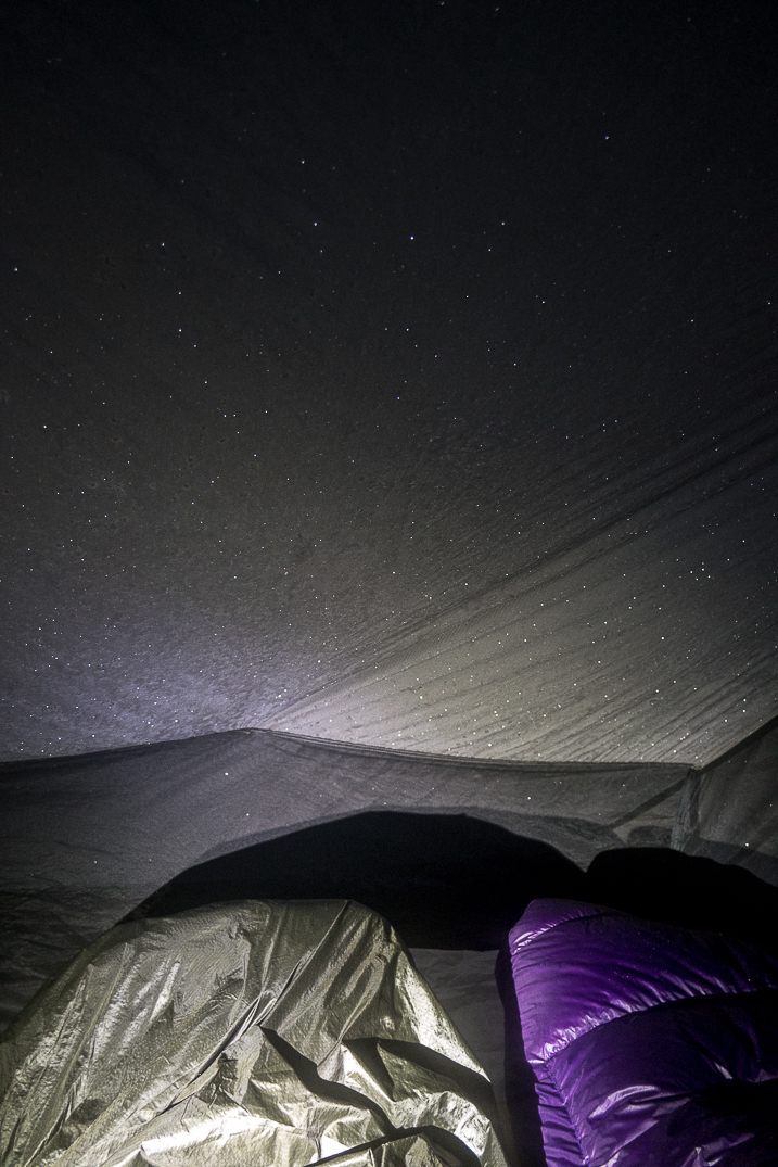 Glittery ice on the inside of our tent