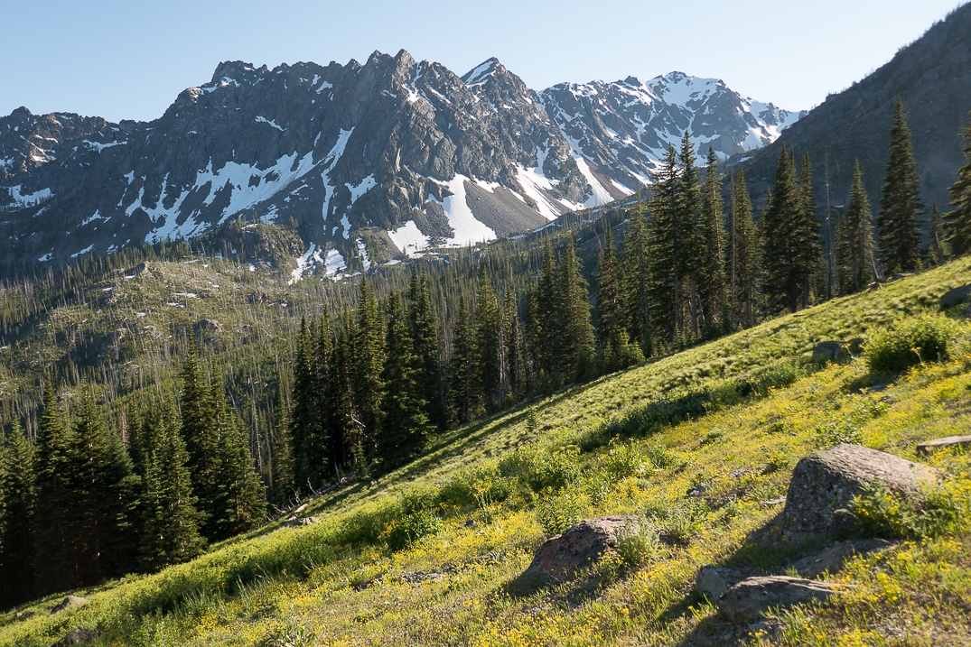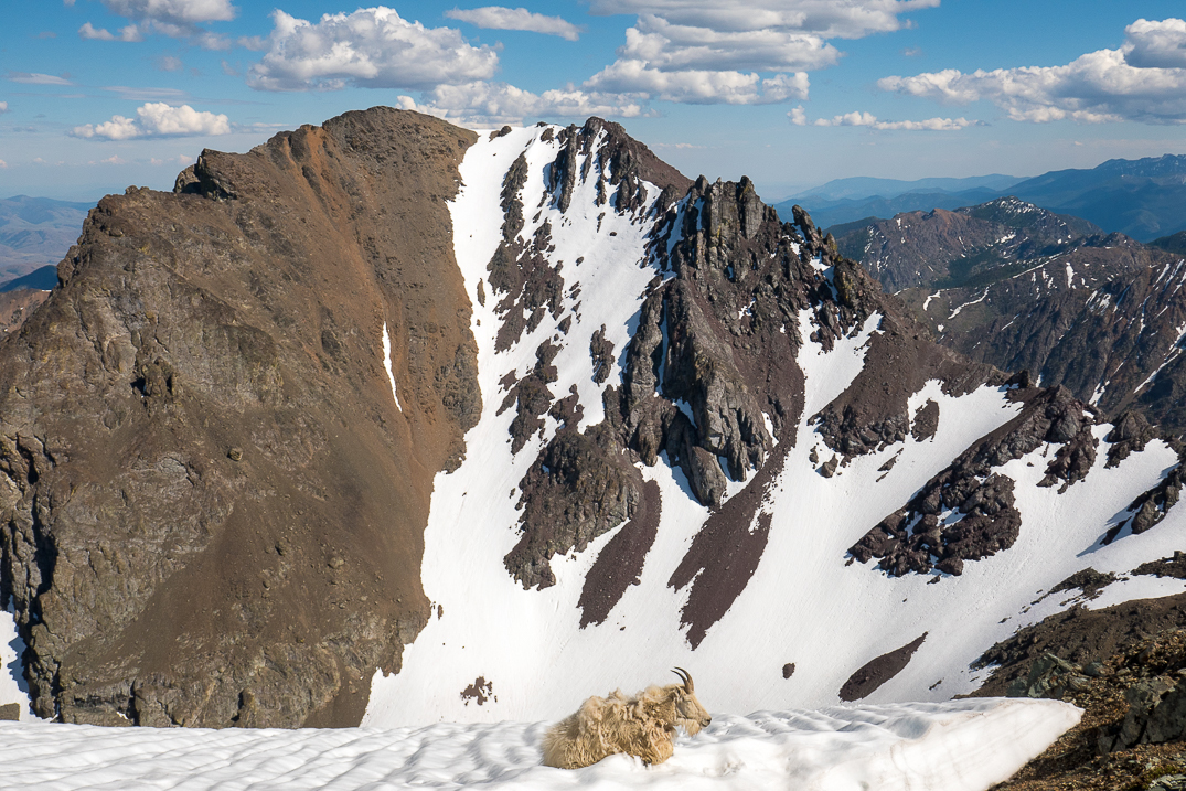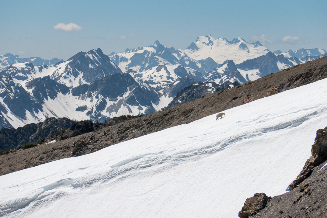 A mountain goat on the next ridge. It ended up following us for a few miles.