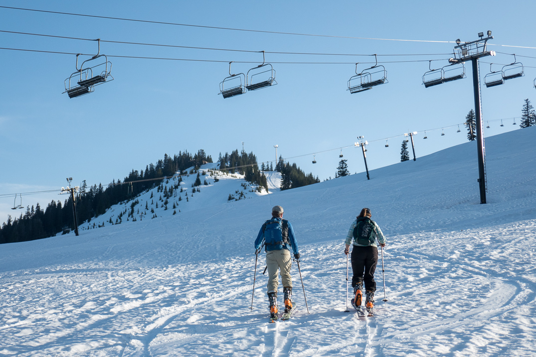 Snoqualmie Mountain and Guye Peak from the top of Wildside