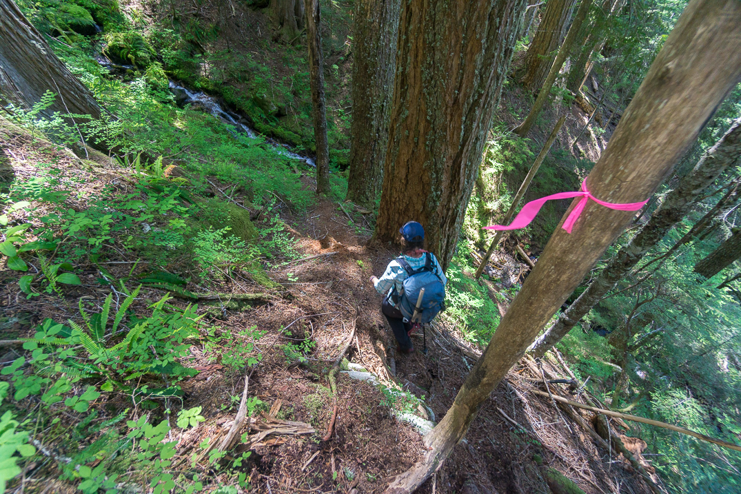 A key ramp at 5,000' that cuts through a cliff band