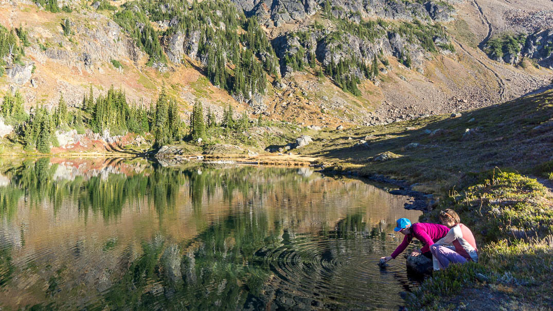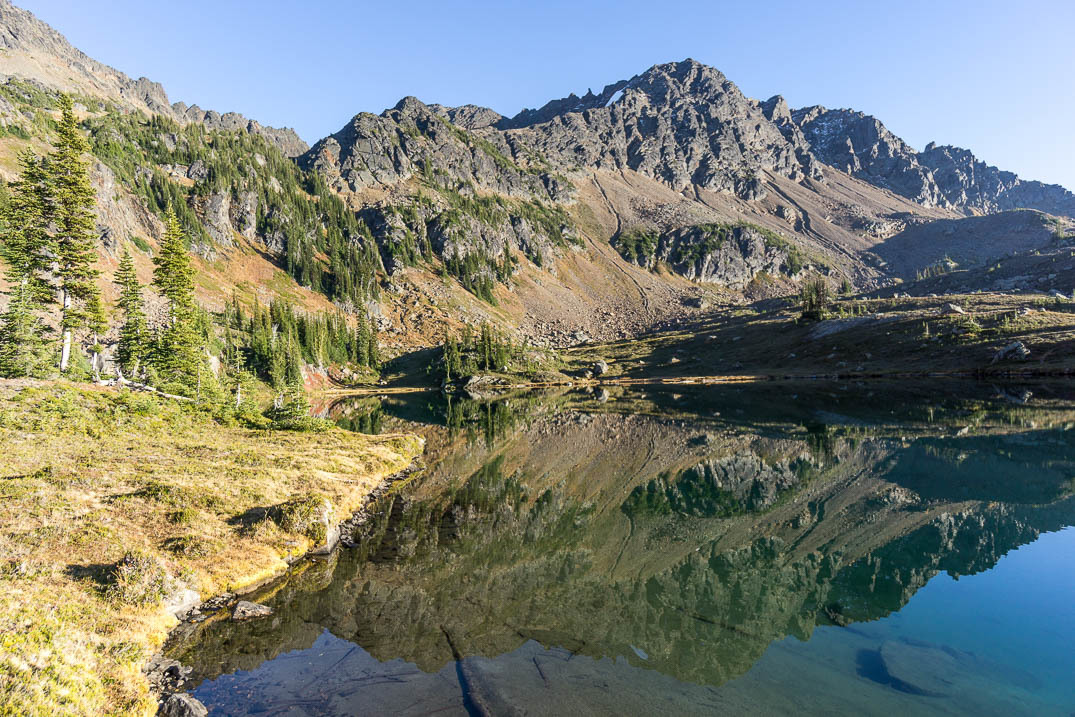 Unnamed lake below Grace Lake with Big Jim Mountain in the background.