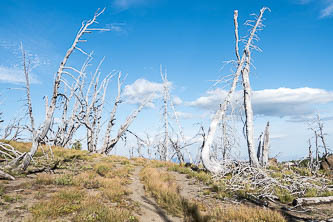 The burned area on the south side of the Cabin Creek valley. The Icicle Ridge Trail is obliterated here.
